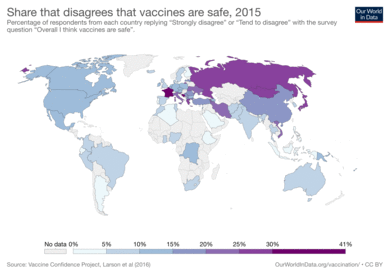- ^ Larson HJ, de Figueiredo A, Xiahong Z, Schulz WS, Verger P, Johnston IG, Cook AR, Jones NS (October 2016). "The State of Vaccine Confidence 2016: Global Insights Through a 67-Country Survey". EBioMedicine. 12: 295–301. doi:10.1016/j.ebiom.2016.08.042. PMC 5078590. PMID 27658738.