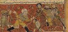 Khosrau then sent Wahrez and his son Nawzadh to Yemen at the head of a small expeditionary force, numbering around 800, of low-ranking Azatan (Azadan) nobility.[6] According to other traditions, it consisted of prisoners that were sentenced to death, while according to another version, the force also included (or entirely consisted of) warriors from Daylam and nearby regions. only two out of eight ships (i.e. 600 men) safely reached the Yemeni coast, who joined the local Himyarite allies and invaded the combined forces of the Aksumites, their Himyarite allies, and certain "Bedouins".[7] During the invasion, Nawzadh was killed,[1] which made Wahrez furious at Masruq ibn Abraha, the Axumite ruler of Yemen. Wahrez then met Masruq in battle and killed him with an arrow, which made the Axumites flee. He then conquered Sana'a, where he is known to have refused to lower his banner to enter via the city gate. Wahrez then restored Sayf ibn Dhi-Yazan to his throne as a vassal of the Sasanian Empire.[6]