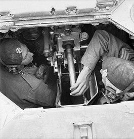 By 1944, the Valentine had been almost replaced in front-line units of the European theatre by the Churchill tank (the Infantry Tank Mark IV) and the US-made M4 Sherman tank. A few were used for special purposes or as command vehicles for units equipped with the Archer self-propelled gun. The Royal artillery used the Valentine XI (with 75 mm gun) as an OP command tank until the end of the war.[14]
