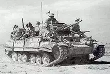 The Tank, Infantry, Mk III, Valentine was an infantry tank produced in the United Kingdom during World War II. More than 8,000 of the type were produced in eleven marks, plus various specialised variants, accounting for approximately a quarter of wartime British tank production.[1] The many variants included riveted and welded construction, petrol and diesel engines and a progressive increase in armament. It was supplied in large numbers to the USSR and built under licence in Canada. It was used extensively by the British in the North African campaign.[2] Developed by Vickers, it proved to be both strong and reliable,[1] which was unusual for British tanks of the period.[2]