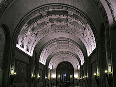 On 29 November 2011 the Expert Commission for the Future of the Valley of the Fallen, formed by the Spanish Socialist Workers' Party (PSOE) government of José Luis Rodríguez Zapatero on 27 May 2011 under the Historical Memory Law and charged to give advice for converting the Valley to a "memory centre that dignifies and rehabilitates the victims of the Civil War and the subsequent Franco regime,"[10] rendered a report[11] recommending as its principal proposal for the Commission's stated end the removal of the remains of Franco from the Valley for reburial at a location to be chosen by his family, but only after first obtaining a broad parliamentary consensus for such action. The Commission based its decision upon Franco having not died in the Civil War and the aim of the Commission that the Valley be exclusively for those on both sides who had died in the Civil War. In regard to Primo de Rivera, the Commission recommended, since a victim of the Civil War, his remains should stay at the Valley but relocated within the Basilica mausoleum on equal footing with those remains of others who died in the conflict. The Commission further conditioned its recommendation for the removal of the remains of Franco from the Valley and the relocation of the remains of Primo de Rivera within the Basilica mausoleum upon the consent of the Catholic Church since "any action inside of the Basilica requires the permission of the Church." Three members of the twelve person commission gave a joint dissenting opinion opposing the recommendation for the removal of the remains of Franco from the Valley claiming such action would only further "divide and stress Spanish society."[12] The Commission additionally proposed for its report creating a "meditation centre" in the Valley for those not of the Catholic faith, the names shown on the esplanade that leads into the Basilica mausoleum of all Civil War victims buried at the Valley who can be identified and an "interpretive centre" be built to explain how and why the Valley exists. The total cost of the proposed changes to the Valley was estimated by the Commission at €13 million.[13] On 20 November, nine days before the issuance of the report of the Commission and ironically on the 36th anniversary of the death of Franco, the conservative Popular Party (PP) won for the 2011 General Election absolute majorities in both Spain's lower house, the Congress of Deputies and Senate.[14]