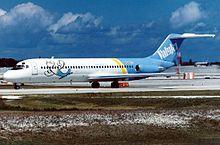 ValuJet operated a fleet of 48 aircraft consisting of McDonnell Douglas DC-9s, along with a few McDonnell Douglas MD-80s. The aircraft were fitted with orange seats. Most of the aircraft were more than 15 years old, many obtained from other carriers. ValuJet had on average one of the oldest fleets in America averaging 27 years. All the planes were painted white with blue and yellow trim, with the smiling "critter" painted on both sides of the plane on the front. ValuJet's FAA call sign was "critter" due to the airline's smiling airplane logo.