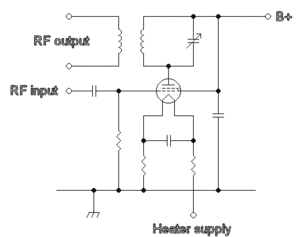 - an audio frequency (AF) stage (typically using conventional broadband small signal circuitry as described in Valve audio amplifier,