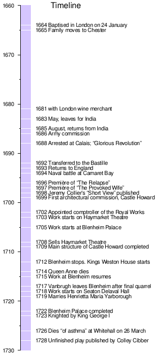 - ^ page 6, Sir John Vanbrugh Storyteller in Stone, Vaughan Hart, 2008, Yale University Press, ISBN 978-0-300-11929-9