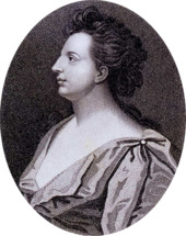 Born in London and baptised on 24 January 1664,[5] Vanbrugh was the fourth child (of 19), and eldest surviving son,[6] of Giles Vanbrugh, a London cloth-merchant of Flemish-Protestant background (as evident in the name, contracted from "Van Brugh"), and his wife Elizabeth,[7] widow of Thomas Barker (by whom Vanbrugh's mother had the first of her twenty children, Vanbrugh's elder half-sister, Elizabeth), and daughter of Sir Dudley Carleton, of Imber Court, Thames Ditton, Surrey. He grew up in Chester, where his family had been driven by either the major outbreak of the plague in London in 1665, or the Great Fire of 1666.[7][a] It is possible that he attended The King's School in Chester, though no records of his being a scholar there survive. Another candidate would have been the school at Ashby-de-la-Zouch, founded by Henry Hastings, 3rd Earl of Huntingdon. It was also not uncommon for boys to be sent to study at school away from home, or with a tutor.[5][8]