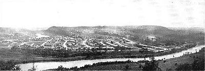 In the 1890s the Apollo Iron and Steel Company ended a bitterly contested labor dispute by hiring replacement workers from the surrounding countryside. To avoid future unrest, however, the company sought to gain tighter control over its workers not only at the factory but also in their homes. Drawing upon a philosophy of reform movements in Europe and the United States, the firm decided that providing workers with good housing and a good urban environment would make them more loyal and productive. In 1895, Apollo Iron and Steel built a new, integrated, non-unionized steelworks and hired the nation's preeminent landscape architectural firm, Olmsted, Olmsted and Eliot, to design the model industrial town: Vandergrift. (named for Capt. J.J. Vandergrift, a director of the steel company).