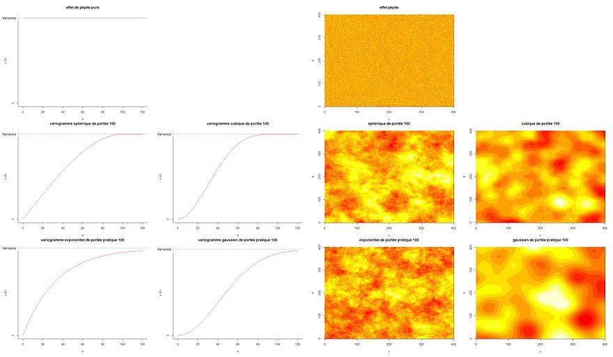 The variogram is the key function in geostatistics as it will be used to fit a model of the temporal/spatial correlation of the observed phenomenon. One is thus making a distinction between the experimental variogram that is a visualisation of a possible spatial/temporal correlation and the variogram model that is further used to define the weights of the kriging function. Note that the experimental variogram is an empirical estimate of the covariance of a Gaussian process. As such, it may not be positive definite and hence not directly usable in kriging, without constraints or further processing. This explains why only a limited number of variogram models are used: most commonly, the linear, the spherical, the Gaussian and the exponential models.