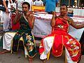 In accordance with the traditions, many religious devotees will perform ritualized mutilation upon themselves and one another while under a trance-like state, including but not limited to: impaling through cheeks, arms, face, legs, back etc., with everything from as small as syringes to as large as is agreed upon between all members; partial skinning (the skin is not removed, just cut and flipped over); slashing of limbs, chest, stomach and especially tongue with swords, axes and knives; bloodletting; removal of tissue (normally limited to cysts) and intentionally wrapping or standing near fire crackers as they are lit.