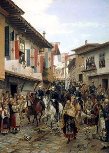 Gurko Street is one of the most picturesque streets in the old town. It is named in memory of the Russian General Iosif Vladimirovich Romeyko-Gurko. As commander of the Forward Force of the Imperial Russian Army in the Russo-Turkish War (1877–1878) he liberated Tarnovo on 7 July 1877 (another street in the city is named "The 7th of July"). General Gurko is commemorated with a bust in the Marno Pole Park in the city center. Annually on that date he is celebrated with an official honour guard by cadets from the city's National Military University and the local branch of the "Traditsiya" ("Tradition") Historical Society re-enacts the event.
