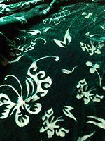 - Embossed: velvet on which a metal roller has been used to heat-stamp the fabric, producing a pattern.[7]