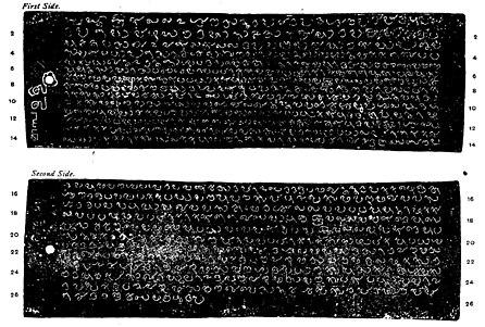 A new calendar was known as the "Kollam Era", was established in 825 CE at port Kollam. The exact events that lead to the foundation of the era is still matter of scholarly debate.[15] According to historians, it commemorated the foundation of Kollam harbour city after the liberation of Venad from the Pandya rule (and hence beginning of Chera influence).[27] The Kollam Syrian plates (c. 849 CE and c. 883 CE) of Venad chieftain Ayyan Adikal, does mention the then Chera king Sthanu Ravi.[6] The chief was providing land and other provisions to the Christian merchant Mar Sapir Iso at the port of Kollam.[4][1][6] The rulers of Venad, known as "Venad Adikal", owed their importance to exchange of spices and other products with the Middle Eastern and Chinese merchants.[22][7][6][23]
