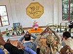 The Ahom religion is based on ancestor-worship. The Ahoms believe that a man after his death remains as ‘Dam’(ancestor) only for a few days and soon he becomes ‘Phi’ (God). They also believe that the soul of a man which is immortal unites with the supreme soul, possesses the qualities of a spiritual being and always blesses the family. So every Ahom family in order to worship the dead establish a pillar on the opposite side of the kitchen (Barghar) which is called ‘Damkhuta’ where they worship the dead with various offerings like homemade wine, mah-prasad, rice with various items of meat and fish. Me-Dam-Me-Phi, a ritual centred on commemorating the dead, is celebrated by the Ahom people on 31 January every year in memory of the departed. It is the manifestation of the concept of ancestor worship that the Ahoms share with other peoples originating from the Tai-Shan stock. It is a festival to show respect to the departed ancestors and remember their contribution to society. On the day of Me-Dam Me Phi worship is offered only to Chaufi and Dam Chaufi because they are regarded as gods of heaven.