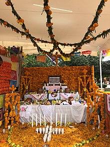 During Samhain, November 1 in Ireland and Scotland, the dead are thought to return to the world of the living, and offerings of food and light are left for them.[42] On the festival day, ancient people would extinguish the hearth fires in their homes, participate in a community bonfire festival, and then carry a flame home from the communal fire and use it light their home fires anew.[43] This custom has continued to some extent into modern times, in both the Celtic nations and the diaspora.[44] Lights in the window to guide the dead home are left burning all night.[42] On the Isle of Man the festival is known as "old Sauin" or Hop-tu-Naa.[45]