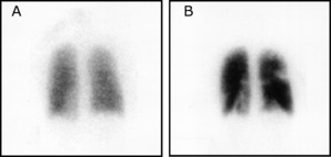 Decreased uptake of the inhaled radioisotope may indicate an impaired ability to breathe, airway obstruction, or possible pneumonia.