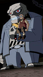 - In Justice League, the character makes two cameos. In part two of the episode "A Better World", an alternate dimension version of the Ventriloquist and Scarface is among the several lobotomized patients courtesy of the Superman of the Justice Lords, a Justice League who goes to extreme measures to ensure peace and is not bound by a "no killing" policy (the Ventriloquist's forehead is unmarked, while Scarface intriguingly bears the two burn scars, indicating that the treatment apparently had the same psychological effect, which means he was the "brain", but still using Wesker as a vessel). In part three of the episode "Starcrossed", another Scarface dummy is in another glass display case in the Batcave.