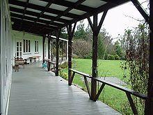 A veranda or verandah is a roofed, open-air gallery or porch, attached to the outside of a building.[1][2] A veranda is often partly enclosed by a railing and frequently extends across the front and sides of the structure.[3]