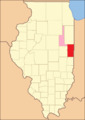 Vermilion County is a county in the eastern part of the U.S. state of Illinois, between the Indiana border and Champaign County. It was established in 1826 and was the 45th of Illinois' 102 counties. According to the 2010 United States Census, it had a population of 81,625, a decrease of 2.7% in 2000.[1] It contains 21 incorporated settlements; the county seat and largest city is Danville.[2]