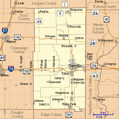 Vermilion County is part of the Danville, Illinois, Metropolitan Statistical Area.