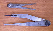 - The upper caliper in the image (at the right) requires manual adjustment prior to fitting. Fine setting of this caliper type is performed by tapping the caliper legs lightly on a handy surface until they will almost pass over the object. A light push against the resistance of the central pivot screw then spreads the legs to the correct dimension and provides the required, consistent feel that ensures a repeatable measurement.