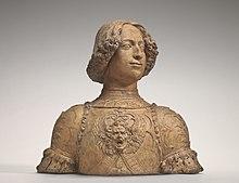 The marble bust of a lady with a bunch of flowers (Dama col mazzolino) in the Bargello at Florence is probably from the later 1470s. The identity of the lady is unknown.[23]