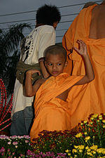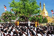Throughout the country, the date is also marked by a traditional festival called the Nyaungye-thun or "Bodhi tree water pouring festival" (ညောင်ရေသွန်းပွဲ), whereby devotees visit pagodas or monasteries (kyaung) to pour scented water to sacred Bodhi Trees using clay pots,[34] to ensure the trees, which hold great significance in Buddhism, do not die during the peak of summer.[33][35][36]