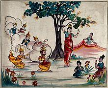 This tradition dates back to the pre-colonial era and continues to take place at major pagodas such as the Shwekyetyet and Shwekyetkya Pagodas in the former royal capital of Amarapura.[32] A Konbaung era court poet, Letwe Thondara composed a complete set of yadu poems describing this festival in Meza Hill, near Katha, where he had been exiled by King Hsinbyushin.[32]
