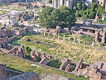 Dionysius of Halicarnassus claims that the earliest Vestals at Alba Longa were whipped and "put to death" for breaking their vows of celibacy, and that their offspring were to be thrown into the river.[32] According to Livy, Rhea Silvia, the mother of Romulus and Remus, had been forced to become a Vestal Virgin, and when she gave birth to the twins, it is stated that she was merely loaded down with chains and cast into prison, her babies put into the river.[33] Dionysius also relates the belief that live burial was instituted by the Roman king Tarquinius Priscus, and inflicted this punishment on the priestess Pinaria.[34] The 11th century Byzantine historian George Kedrenos is the only extant source for the claim that prior to Priscus, the Roman King Numa Pompilius had instituted death by stoning for unchaste Vestal Virgins, and that it was Priscus who changed the punishment into that of live burial.[35] But whipping with rods sometimes preceded the immuration as was done to Urbinia in 471 BC.[36]