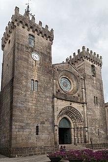 - Cathedral of Viana do Castelo (Portuguese: Igreja Matriz de Viana do Castelo/Catedral de Viana do Castelo/Sé de Viana do Castelo), the 15th-century parochial church and cathedral, was constructed in the Romanesque style, comprising a façade flanked by two large towers with merlons, while the middle Gothic portal with archivolts is decorated by sculptures depicting the Passion of Christ and of the Apostles. The interior designed in the form of the Latin cross, includes a nave and two aisles (separated by arches supported by pillars), as well as two ancillary chapels dedicated to São Bernardo and the Holy Sacrament, both attributed to João Lopes "the Elder".