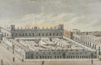 In November 1828 in Mexico City, Guerrero supporters took control of the Accordada, a former prison transformed into an armory, and days of fighting occurred in the capital. President-elect Gómez Pedraza had not yet taken office and at this juncture he resigned and soon went into exile in England.[21] With the resignation of the president-elect and the ineffective rule of the sitting president, civil order dissolved. On 4 December 1828, a riot broke out in the Zócalo and the Parián market, where luxury goods were sold, was looted. Order was restored within a day, but elites in the capital were alarmed at the violence of the popular classes and the huge property losses.[22][23] With the resignation of Gómez Pedraza, and Guerreros's cause backed by Santa Anna's forces and the powerful liberal politician Lorenzo de Zavala, Guerrero became president. Guerrero took office as president, with Bustamante, a conservative, becoming vice president. One scholar sums up Guerrero's situation, "Guerrero owed the presidency to a mutiny and a failure of will on the part of [President] Guadalupe Victoria...Guerrero was to rule as president with only a thin layer of support."[24]