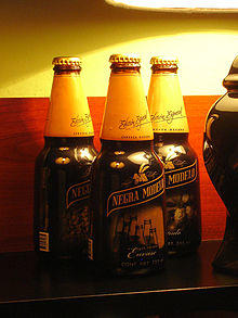 Modelo Negra is a 5.4% abv Dunkel-style lager [13] first brewed in Mexico by Austrian immigrants, and was introduced as a draft beer in 1926.[14][15] Modelo Negra comes in an unusually shaped, wide brown bottle with a trademark gold label. The full name of the beer is Cerveza Negra Modelo. The word "modelo" means "model" or "example" in Spanish. "Negra" means "black" or "dark" and modifies "cerveza."