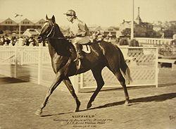 First run in 1855, the first three editions were won by fillies but the last time a filly won was in 1923 when Frances Tressady claimed victory.[3] In its history, only one horse has ever won the Victoria Derby more than once. Fireworks accomplished the feat, winning back-to-back runnings in November 1867 and again in 1868 after a change of the race date to New Year's Day.[3] Between 1931 and 1956 geldings were not permitted to compete.[3]