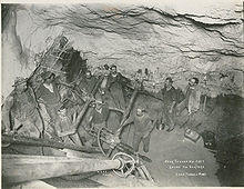 With the exception of the more extensive fields of California, for a number of years the gold output from Victoria was greater than in any other country in the world. Victoria's greatest yield for one year was in 1856, when 3,053,744 troy ounces (94,982 kg) of gold were extracted from the diggings.[3] From 1851 to 1896 the Victorian Mines Department reported that a total of 61,034,682 oz (1,898,391 kg) of gold was mined in Victoria.[4]