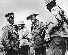 By 1890 Huerta had reached the rank of Colonel of Engineers. From 1890 to 1895 Huerta lived in Mexico City, becoming a regular visitor to the presidential residence at Chapultepec Castle, and was seen as part of Díaz's "court".[17] Through Huerta was well liked at the Chapultepec Castle, acquiring the persona of a trim, efficient office who was stern to his subordinates while displaying a courtly, polished manner towards his superiors, he began to suffer from severe insomnia and began drinking heavily during this time.[18] In January 1895 he commanded a battalion of infantry against a rebellion in Guerrero led by Gen. Canuto Neri.[19] The rebellion was ended when Díaz brokered a deal with Neri, who surrendered in exchange for a promise to remove the unpopular state governor.[20] Huerta confirmed his reputation for ruthlessness by refusing to take prisoners and continuing to attack the followers of Neri even after Díaz had signed a ceasefire.[21] In December 1900 Huerta commanded a successful military campaign against Yaqui in Sonora.[22] During the near-genocidal campaign against the Yaqui, Huerta was more concerned with mapping out the terrain of Sonora, but at times he commanded forces in the field against the Yaqui.[22] From 12 April-8 September 1901 Huerta put down a rebellion in Guerrero, completely "pacifying" the state.[23] In May 1901 he was promoted to the rank of general.[24] In 1901-02 he suppressed a Maya' rising in Yucatán. He commanded about 500 men in his campaign against the Maya, starting in October 1901, and fought 79 different actions over the course of 39 days.[25] Huerta was then promoted to Brigadier General and awarded the Medal of Military Merit [7] In May 1902 he was promoted commander of federal army forces in Yucatán, and in October 1902 he reported to Díaz that he had "pacified" the Yucatán.[26] During the campaign in Yucatán he became increasingly dependent on alcohol to continue functioning. His health began to decline, and perhaps because of his heavy drinking he complained he could not go outside in the sunshine without wearing sunglasses, and he suffered bouts of uncontrollable nervous shaking. His decaying teeth caused him much pain.[26] In August 1903 he was appointed to head a committee tasked with reforming the uniforms of the federal army.[27] In 1907 he retired from the army on grounds of ill health, having developed cataracts while serving in the southern jungles. He then applied his technical training by taking up the position of Head of Public Works in Monterrey and planning a new street layout for the city.