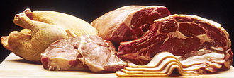 Adulteration is a legal term meaning that a food product fails to meet the legal standards. One form of adulteration is an addition of another substance to a food item in order to increase the quantity of the food item in raw form or prepared form, which may result in the loss of actual quality of food item. These substances may be either available food items or non-food items. Among meat and meat products some of the items used to adulterate are water or ice, carcasses, or carcasses of animals other than the animal meant to be consumed.[14]