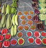 Finger food is food meant to be eaten directly using the hands, in contrast to food eaten with a knife and fork, spoon, chopsticks, or other utensils.[18] In some cultures, food is almost always eaten with the hands; for example, Ethiopian cuisine is eaten by rolling various dishes up in injera bread.[19] Foods considered street foods are frequently, though not exclusively, finger foods.