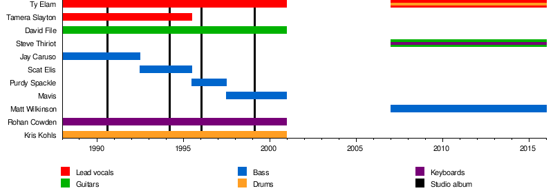 | Past members | David File Kris Kohls Rohan Cowden Tamera Slayton Jay Caruso Scat Elis Chris Goodsell Mavis Marianne Ray Chris O'Brian |