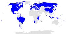 The event is televised by the Austrian national broadcasting service ORF – from 1989 to 1993, 1997 to 2009, and again in 2011 under the direction of Brian Large – and relayed via the European Broadcasting Union's Eurovision network to most major broadcasting organizations in Europe. On 1 January 2013, for example, the concert was shown on Één and La Une in Belgium, ZDF in Germany, France 2 in France, BBC Two in the United Kingdom, Rai 2 in Italy (on some hours delay), RSI La 1 in Switzerland, La 1 in Spain, ČT2 in the Czech Republic, RTP1 in Portugal, and TVP2 in Poland, among many other channels. The concert was again televised by ORF on 1 January 2015 and 1 January 2016. Estimated audience numbers are ~50 million, in 73 countries in 2012, 93 countries in 2017 and 95 countries in 2018.[17][18][19]