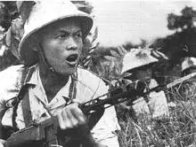 The formation of the National Liberation Front (NLF) and People's Army of Vietnam (PAVN) lies in the communist dominated resistance to the French – the Viet Minh.[4] The expulsion of the French had still left a clandestine organization behind in the South, reinforced by thousands of Southerners that had gone North after the communist victory ("regroupees"). This clandestine organization initially focused on political organization and propaganda, and came under heavy pressure by the Diem regime. Diem was an implacable enemy of the Communists and his nationalist credentials were comparatively clean, but he had inherited a very fragile situation. From the beginning he faced the threat of military coups, thrusting criminal gangs, a weak bureaucracy and army, and fierce factional fighting within South Vietnam between not only political factions, but religious groups (Buddhists and Catholics) as well.[5]
