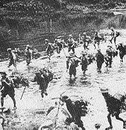 The PAVN was first conceived in September 1944 at the first Revolutionary Party Military Conference as Vietnam Propaganda Liberation Army (Việt Nam Tuyên truyền Giải phóng Quân) to educate, recruit and mobilise the Vietnamese to create a main force to drive the French colonial and Japanese occupiers from Vietnam.[5] Under the guidelines of Hồ Chí Minh, Võ Nguyên Giáp was given the task of establishing the brigades and the Vietnam Propaganda Liberation Army came into existence on 22 December 1944. The first formation was made up of thirty one men and three women, armed with two revolvers, seventeen rifles, one light machine gun, and fourteen breech-loading flintlocks.[6] The United States' OSS agents, led by Archimedes Patti – who was sometimes referred as the first instructor of the PAVN due to his role, had provided ammunitions as well as logistic intelligence and equipments and they had also helped training these soldiers which was later become the vital backbone of the later Vietnamese military to fight the Japanese occupiers as well as the future wars.