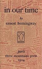 Ernest Hemingway is noted for his novels and short stories, and was awarded the Nobel Prize for Literature in 1954.[19] In Our Time is Hemingway’s collection of short stories. The collection features untitled vignettes, which are fragmented yet integrated into an overarching narrative. The vignettes act as critical aspects of the overall stories rather than inconsequential descriptions.[12] The writing style of In Our Time consists of succinct, declarative sentences characteristic of the Modernist period.[21] In Our Time explores World War 1 and its aftermath, depicting themes such as masculinity, adaptation, maturity and responsibility.[21]