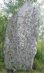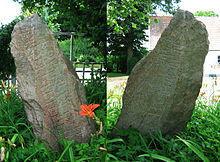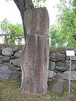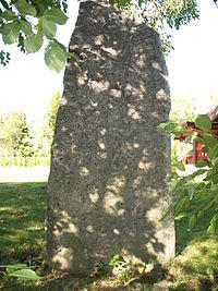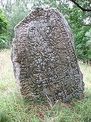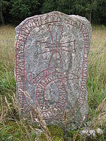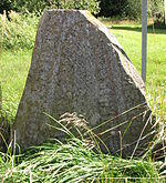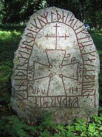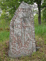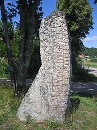 In the village of Tystberga there are three raised stones.[23] Two of them are runestones called Sö 173 and Sö 374, of which the last one has a cross.[23] Both inscriptions are from the 11th century and tell of the same family.[23] They probably refer to Viking expeditions both westwards and eastwards.[23]