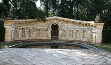 It has seven figural statues in niches and four nearly free-standing figures which may have been carved by Marcantonio Barbaro himself. The spring forms a pool, which can be used for fishing. The water also flowed to the kitchen as well as watered the gardens.[10]