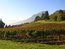 Vin de Savoie is an Appellation d'Origine Contrôlée (AOC) for red and white wines in the Savoy wine region of France, which is located in the foothills of the Alps. The region is divided roughly into three distinct parts: the glacially sculpted terrain along the South shore of Lake Geneva, the hilly country near the northern end of Lac de Bourget, and the area bordering the Massif de Bauges South of Chambéry.[1]