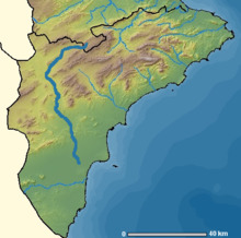 Its source lies in a mountainous part of the northwest part of the Alicante province, between Bocairent and Banyeres de Mariola in an area known as Els Bruchs.[2] It does not currently discharge into the Mediterranean Sea, but due to its diminished flow in the lower part of its course, it fades out into a series of small irrigation channels (séquies) which flow south of Elx/Elche into the marshes known as El Fondo Natural Park and the Salines de Santa Pola Natural Park.