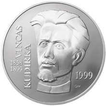 Vincas Kudirka (31 December [O.S. 19 December] 1858 – 16 November [O.S. 4 November] 1899) was a Lithuanian poet and physician, and the author of both the music and lyrics of the Lithuanian National Anthem, Tautiška giesmė. He is regarded in Lithuania as a National Hero. Kudirka used pen names V. Kapsas, Paežerių Vincas, Vincas Kapsas, P.Vincas, Varpas, Q.D, K., V.K, Perkūnas.