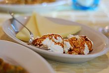 In Basilicata, vincotto is a key ingredient of several traditional dishes such as lagana chiapputa, pasta with walnuts, almonds, pine nuts and raisin,[2] and pan minisc', a dessert enriched with flour, sugar, and spices.[3]