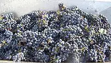 Pressing is the act of applying pressure to grapes or pomace in order to separate juice or wine from grapes and grape skins. Pressing is not always a necessary act in winemaking; if grapes are crushed there is a considerable amount of juice immediately liberated (called free-run juice) that can be used for vinification. Typically this free-run juice is of a higher quality than the press juice.[7] Pressed juice is typically lesser in quality due to the release and increase of total phenolic compounds, as well as browning index and the C6-alcohol levels. These compounds are responsible for the herb-like taste perceived in wine with pressed grapes.[8] However, most wineries do use presses in order to increase their production (gallons) per ton, as pressed juice can represent between 15%-30% of the total juice volume from the grape.