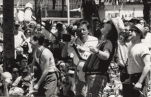 Violent Femmes were founded by bassist Brian Ritchie and percussionist Victor DeLorenzo following the demise of the initial wave of American punk rock, and became a full-fledged band upon the arrival of lead vocalist and guitarist Gordon Gano. According to Ritchie, he came up with the name of the group as a fake band name when one of his bandmates questioned his assertion that his brother was also in a band—he and DeLorenzo liked the name, so they used it for the rhythm duo in which they played prior to Gano joining the group.[5] In its early days, the band frequently played coffee houses and street corners. They were discovered by James Honeyman-Scott (of the Pretenders) on August 23, 1981 when the band was busking on a street corner in front of the Oriental Theatre, the Milwaukee venue that the Pretenders would be playing later that night. Chrissie Hynde invited them to play a brief acoustic set after the opening act.[6]