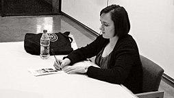 The animators animated a rough test sequence to some of Vowell's dialogue from the radio segment about her father's cannon, in which Violet is depicted being startled by a gun that repeatedly fires in her hands.[5] Despite experiencing some hesitation due to having never voiced an animated character before,[2] Vowell accepted the role after receiving an e-mail from the film's producer, agreeing to participate in The Incredibles because she believes that Pixar is consistently "the best at what they do", comparing the offer to politician Nelson Mandela "asking for your help to fight racism".[5] She had also been a long-time fan of Bird's work as a filmmaker.[9] Vowell ultimately accepted the role based on a sole image she had been sent of the character: a drawing of Violet surrounded by her schoolmates, all of whom appear to be happy and outgoing apart from Violet herself, who is instead hunched over and hiding behind her hair. Vowell concluded, "I can be that kid. I was that kid. I love that archetype of the morose, shy, smart-alecky teenage girl."[5]