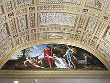 Euripides' tragedy Hippolytus describes the death of the eponymous hero after a confrontation with his stepmother Phaedra, the second wife of Theseus. Cursed by Aphrodite, Phaedra falls so ardently in love with Hippolytus that she becomes physically ill and decides to end her suffering through suicide. Her nurse tries to save her by revealing the secret to Hippolytus and encouraging him to reciprocate. Hippolytus responds only with horror and disgust, humiliating Phaedra. In despair, and not wanting to admit the true reason for ending her life, she hangs herself and leaves a note for Theseus accusing his son of raping her.[4] Theseus, furious, uses one of the three wishes given to him by Poseidon, his father, to curse Hippolytus, who has fled the palace to go hunting. Poseidon sends a sea-monster to terrorize Hippolytus's chariot horses, which become uncontrollable and hurl their master out of the vehicle. Entangled in the reins, Hippolytus is dragged to death.[5] Artemis reconciles father and son by telling Theseus that Phaedra was lying, and comforts the dying Hippolytus with a promise to make him the subject of religious practice so that his memory will live forever. She assigns a band of Trozenian maidens the task of preserving the story of Phaedra and Hippolytus in a ritual song.[6]